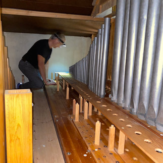 Very fortunately, the organ tuner came to visit Herøy and Dønna the week before my guests arrived. I was not looking forward to letting my dad see this particular organ. I don’t think my organ playing is generally well regarded for its nuance and style, particularly when it come to registration, but in Herøy I had been reduced to literally pulling out almost all the stops, coupling them together and hoping that each note would sound at least one pipe. Of course, I was also worried that I was doing something incredibly stupid but the horror on the tuner’s face was the reassurance I needed. The original plan had been one afternoon/evening in Herøy and then up to Dønna next day to give the Dønnes organ a wee tune. Despite being the oldest instrument, and indeed quite historic, it is working well (apart from a godawful “klunk” when I switch it on) and just needs a little tune. However, the Herøy organ was in such dire need of TLC, that that plan was abandoned. It would appear that vast amounts of dust had enveloped one side of the organ so we ended up taking out hundreds of pipes, cleaning them with damp cloths, and sucking/blowing air through them with an air compressor and vacuum cleaner.