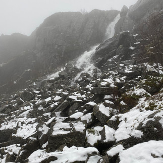 After that, we hopped in for the short drive to a climb up a hill near the Ravnskardsvatnet. it has to be said that despite the wooden walkway all the way it was still fairly treacherous with the snow lying on the trail. Even the dog was a tad nervous in places! Nonetheless we persevered (including fording a stream) and a great sense of accomplishment was had as we reached the top. Of course that was quickly nullified by the thought that I had to do this all in reverse and gravity would be only keen to give me an extra helping hand if I slipped!