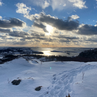 The walk started off fairly sedately but then got a lot harder. There was allegedly a path but of course it was submerged under the snow - which was occasionally up to at least the knee! If you couldn’t see the path there were red ribbons tied around branches etc but they were very conspicuous by their absence. Let me assure you that phrases like “I’m sure it should be around here somewhere” or “I can’t remember” were not the most reassuring. That being said, we could always see Solfjellsjøen so it’s not as if we were in any great danger of getting lost.