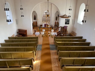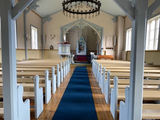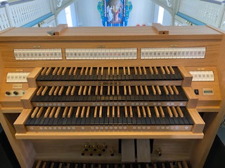 Aww what pretty little churches! I love the look of the ceiling in the one with blue/grey pews. And the view from the 3 manual is impressive. Is that a projector screen l spy in the corner?