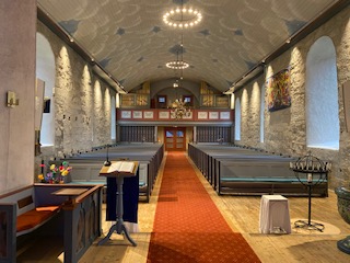 Yesterday (Wednesday) I had a sore head - metaphorically and physically. It was my first full day in Norway and Bård kindly gave me a tour around 4 of the churches and 2 office centres, introduced me to a lot of new colleagues and also took me to pick up my rental car. A wide variety of organs from a historic one with a single manual to a very modern electronic with 3 manuals and pedals. Lots of very beautiful churches in stunning scenery and I'm looking forward to getting started.